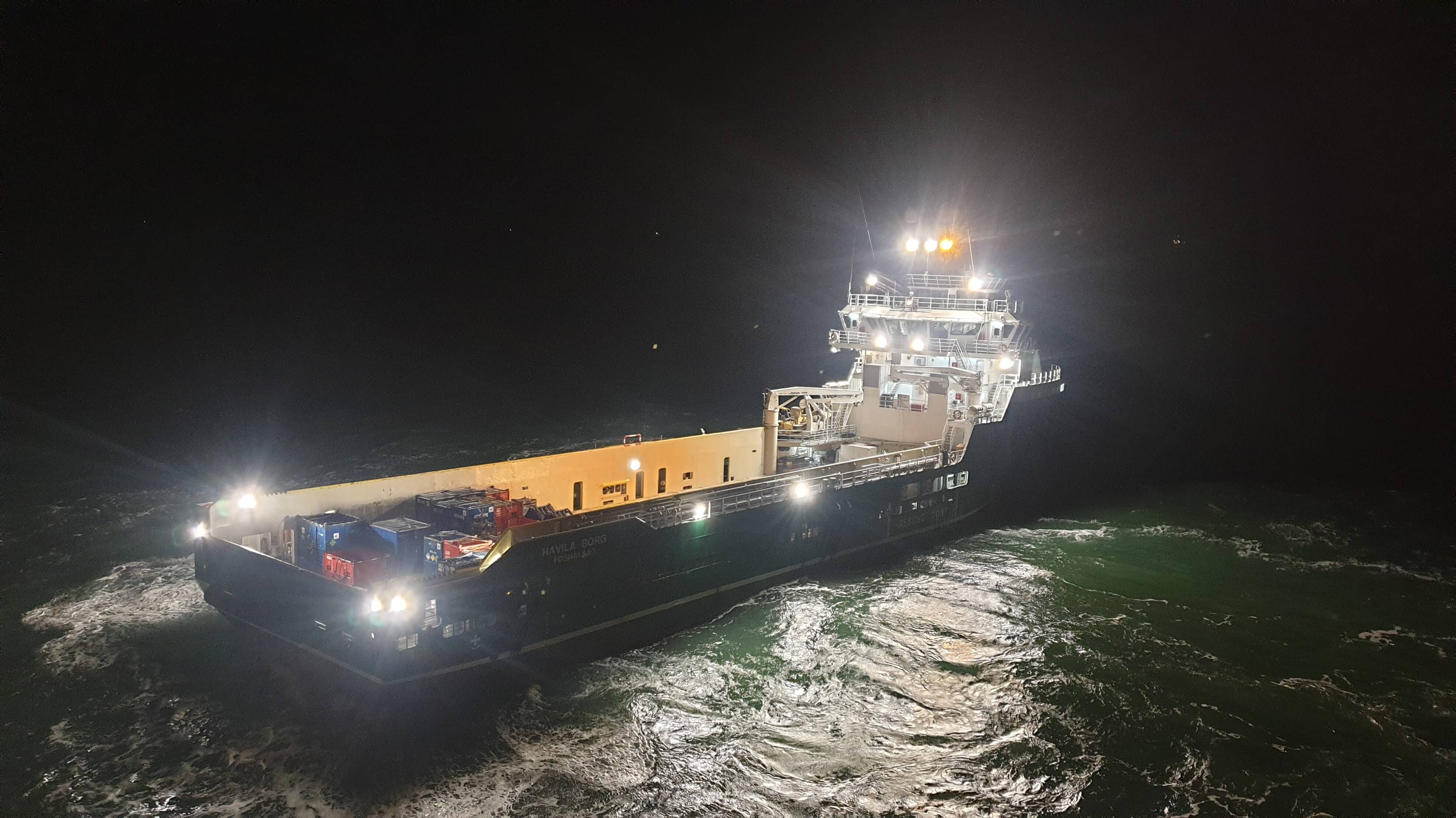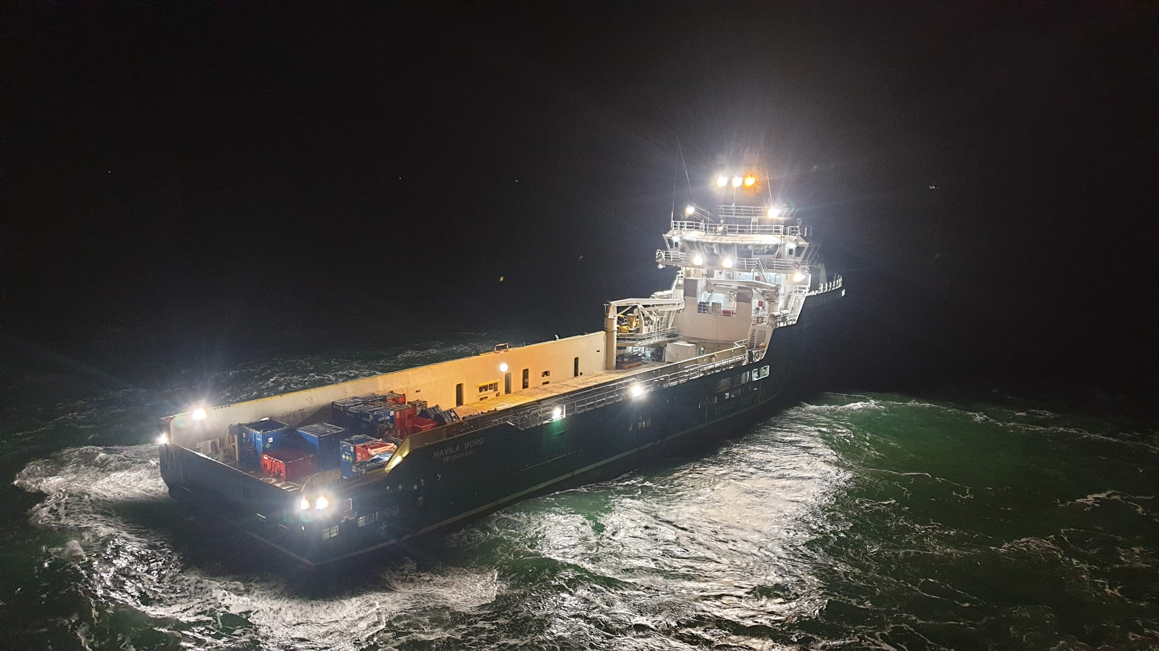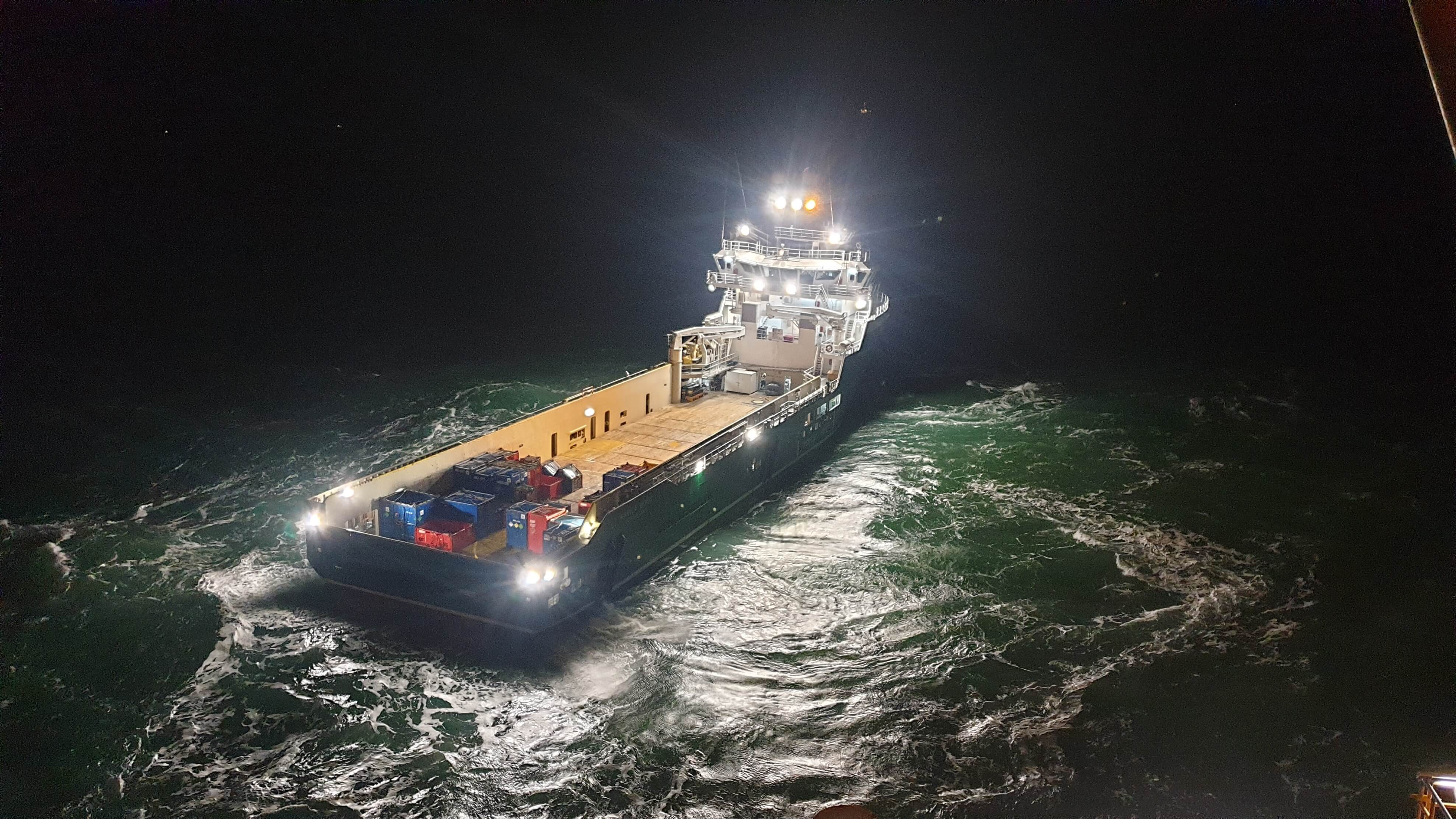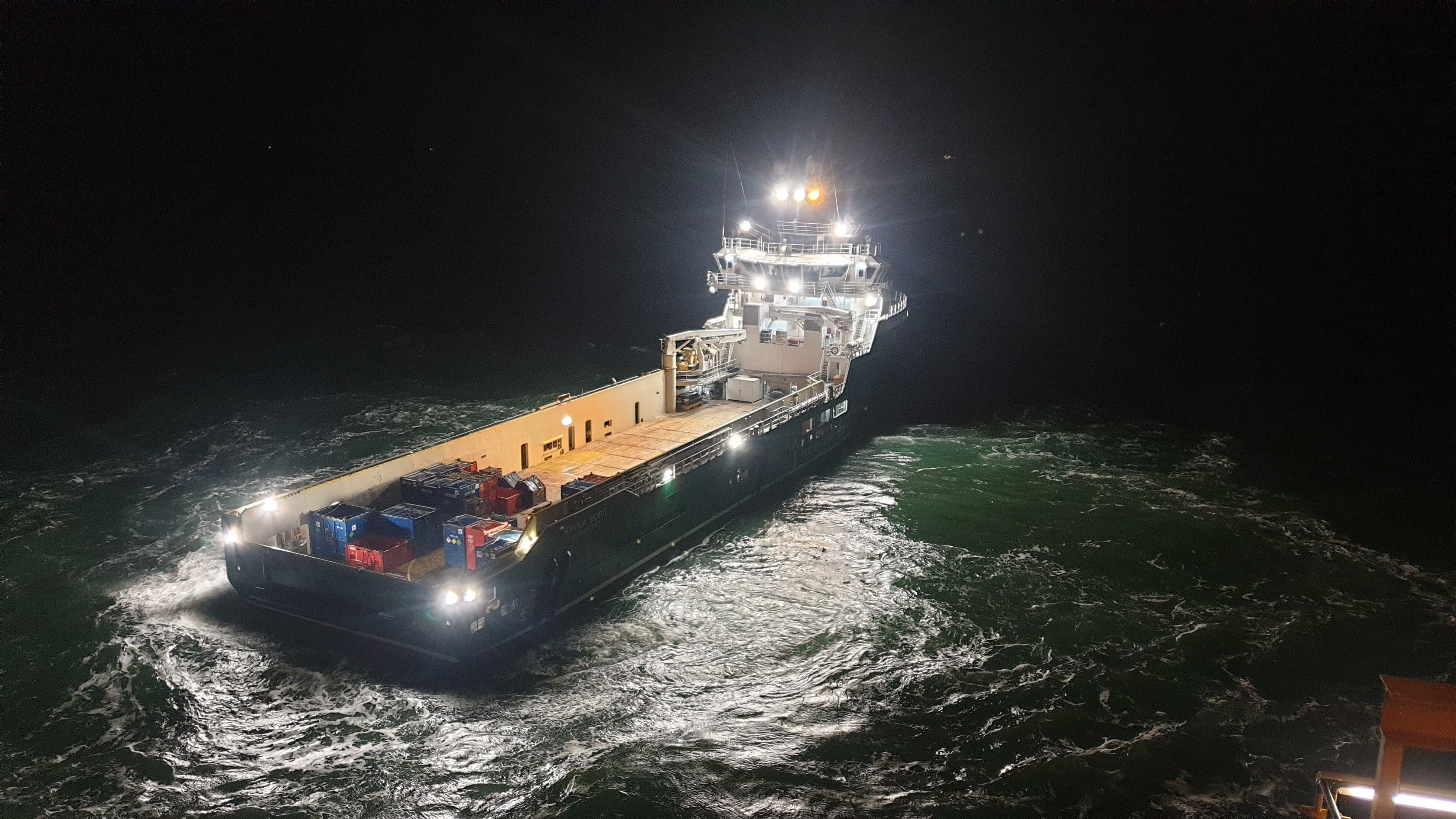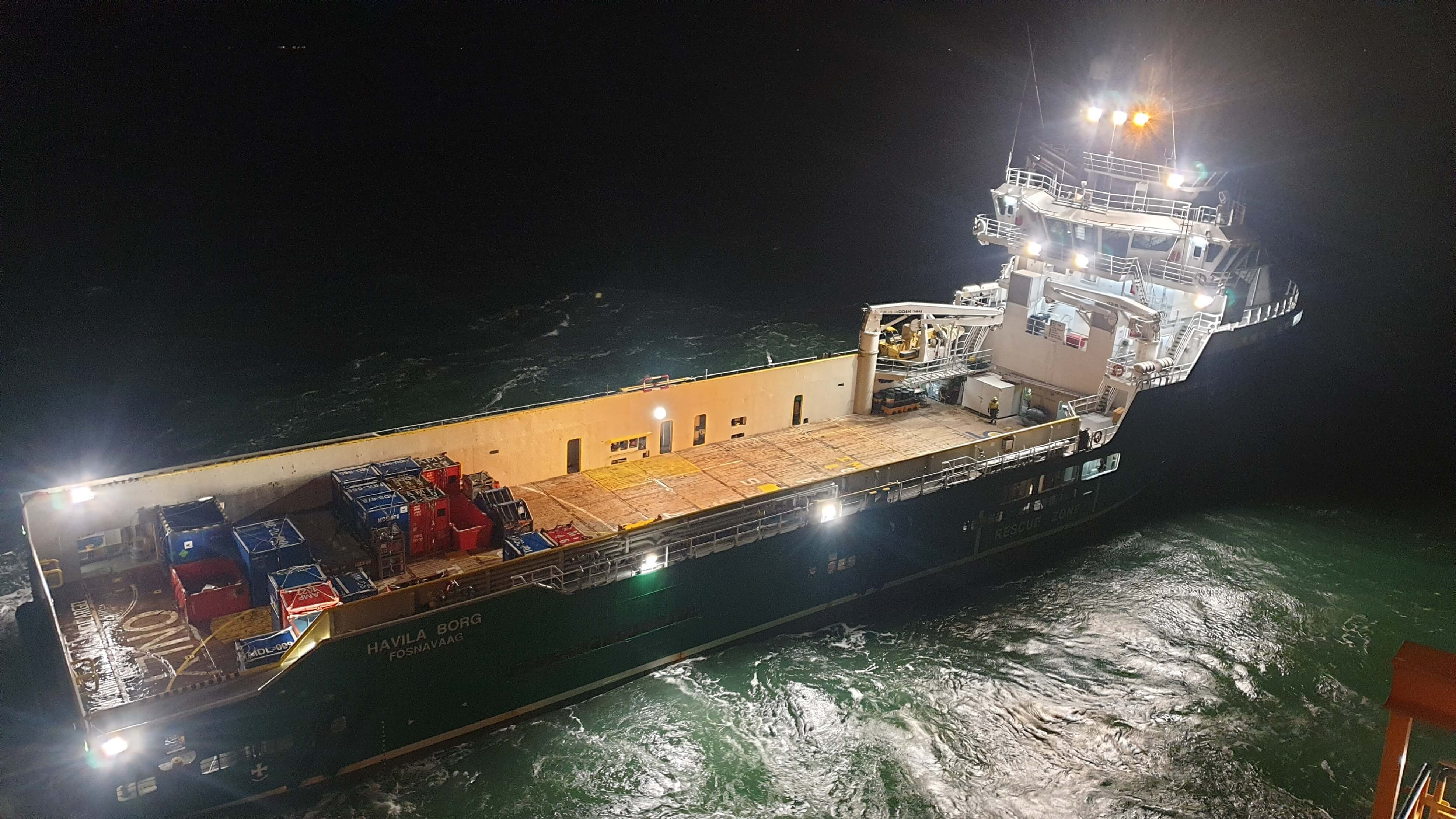 Hieronder is de Havila Borg cargo aan het laden en afleveren bij het offshore platform K15-FB-1 in het Nederlandse deel van Noordzee.