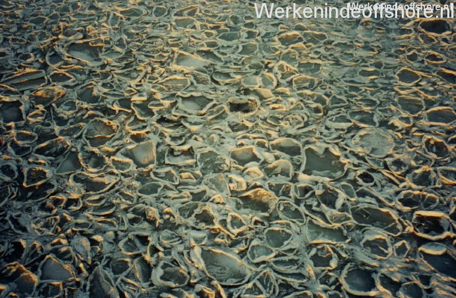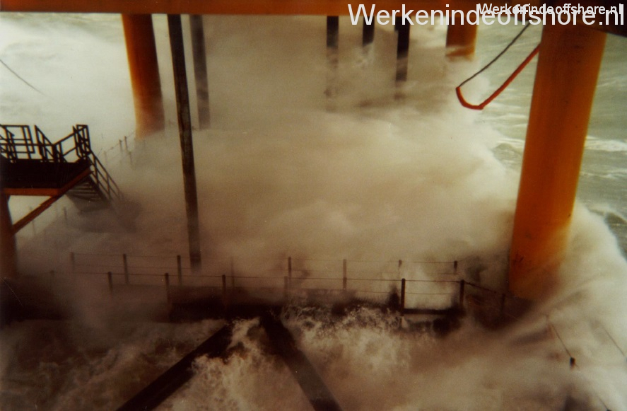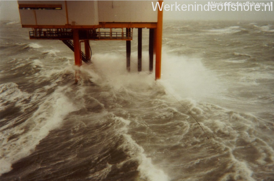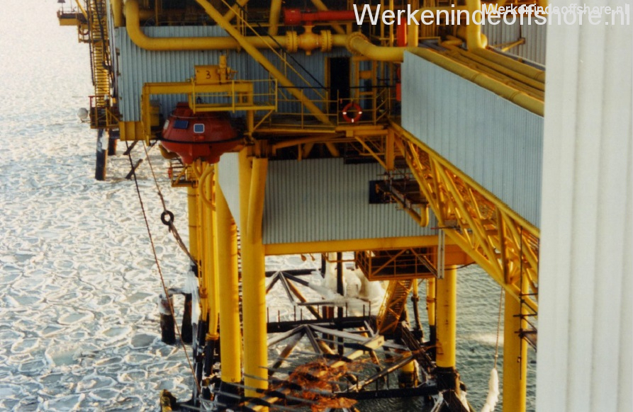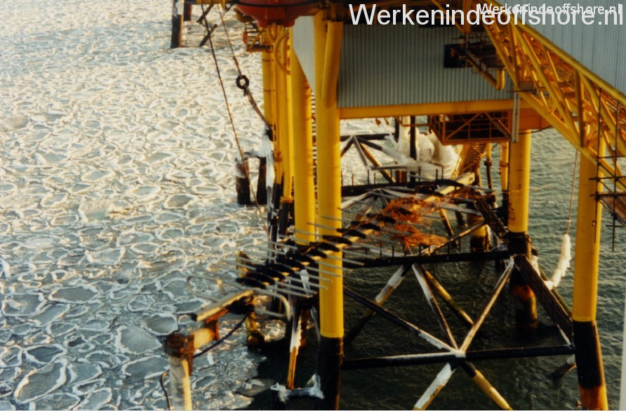 Onderstaande eerste foto’s zijn uit de begin jaren tachtig en geven een goed beeld van hoe het er toe aan toe ging in die jaren. Ook de foto’s waarbij de platformen omringt zijn door ijs zijn heel mooi. Het aanboord brengen en het er af halen van mensen d.m.v. een basket wordt nagenoeg niet meer gedaan. De laatste keer dat ik het heb meegemaakt was, volgens mij, ten tijde van de Ijslandse vulkaanuitbarsting in 2012, Door de as konden er een week geen helikopters vliegen en was er na zeven dagen een optie om per boot (dus van het platform naar de boot middels een basket) een crew change uit te voeren. Gelukkig was het niet nodig, want met een basket overgezet worden is, wat mij betreft, geen pretje.