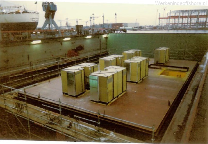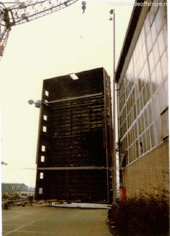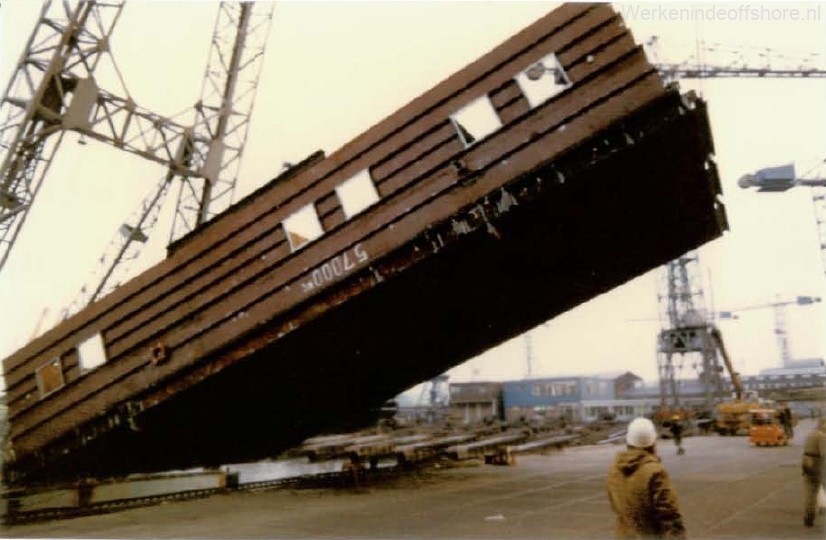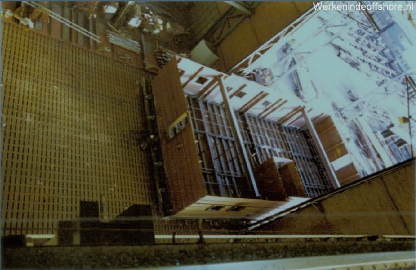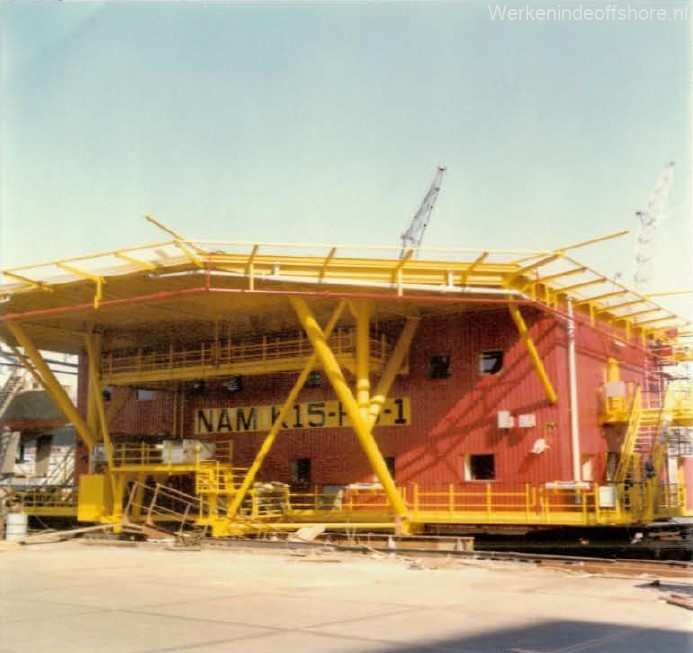 Zelf vind ik het altijd mooi om beeldmateriaal te zien/bemachtigen van hoe de platformen gebouwd werden. Zo heb ik een document gevonden over de “close-out” van de living quarters van de K15FB1. De modules, zoals het living quarter, is gebouwd door “Boele’s Scheepswerven en Machinefabriek B.V.” te Bolnes in de periode 1981-1982. Via de Maas is het gevaarte verscheept en passeerde daarbij de Van Brienenoordbrug, de Hef en de Koninginnebrug. Zie hieronder enkele foto’s uit dat rapport.