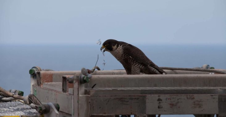 Tijdens de grote ombouw van het productie platform de K14-FA-1-C/P, ook wel de OneCal ombouw genoemd, zag een NAM medewerker (Henk) een ‘grote’ roofvogel op het platform zitten. Steeds dichterbij komend bleef het beest zitten, waarschijnlijk moe van de lange reis vanuit Den Helder naar de K14-FA-1-C/P. Enkele dagen eerder was er een dode blauwe…